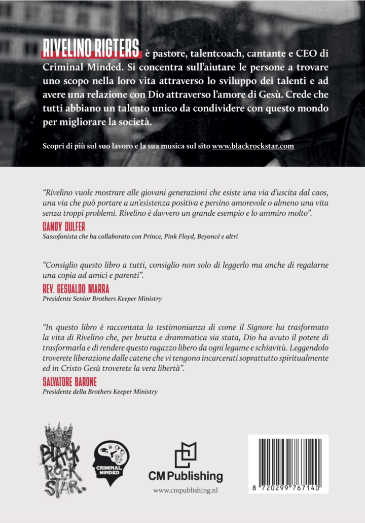 Libro personale del rapper/cantante e animatore giovanile Rivelino Rigters. Una storia sulla morte di suo padre, cattivi modelli, scelte sbagliate, furti, droga e arresti. Ma anche come Rivelino ha scelto di sfondare il suo stile di vita, come ha imparato dai suoi errori e lentamente ha costruito una vita positiva in cui Dio, la musica e i giovani sono centrali. Rivelino è un talent coach e vuole aiutare i giovani a fare le scelte giuste.